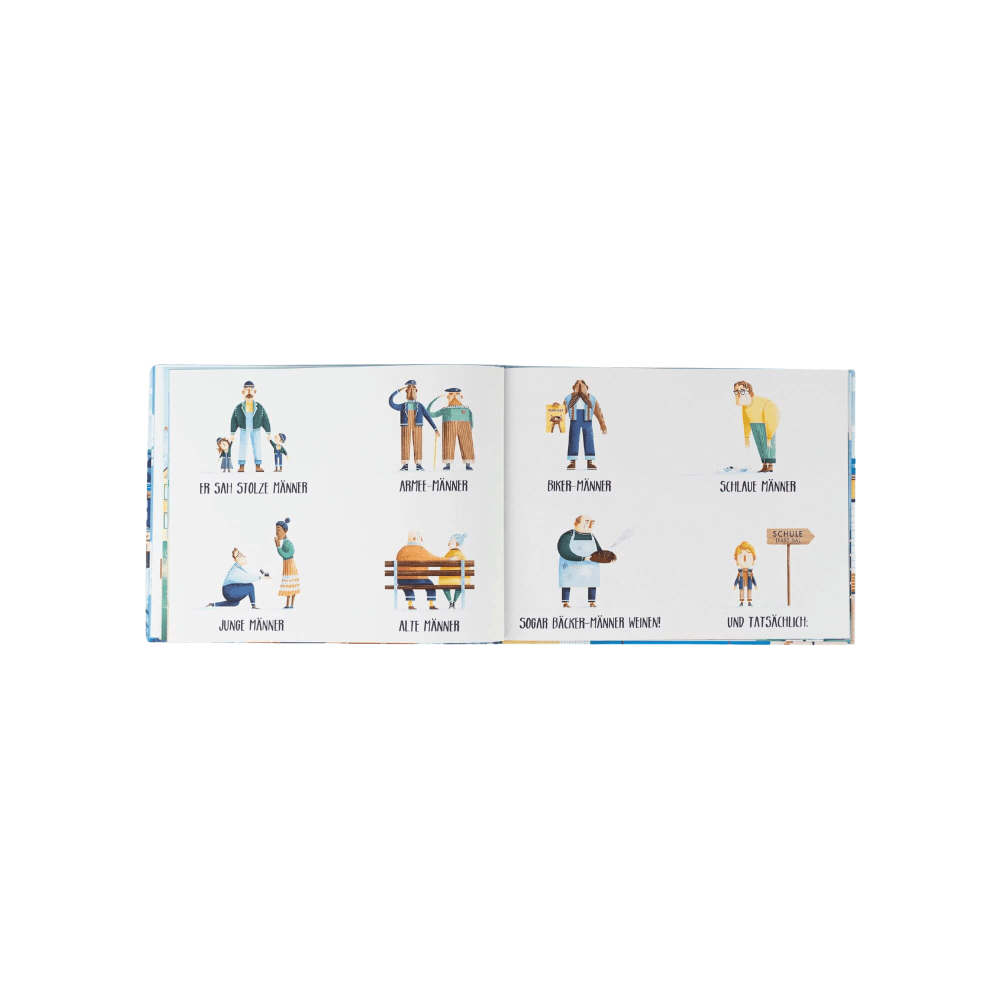 Der Inhalt: Vor seinem ersten Tag an einer neuen Schule ist Levi ganz mulmig zumute. Da sagt sein Papa in seiner Hilflosigkeit: „Männer weinen nicht!” Doch auf seinem Schulweg beobachtet Levi überall Männer, die ihren Gefühlen freien Lauf lassen. Als Levi am Nachmittag nach Hause kommt, hat sein Papa Tränen in den Augen und beide verstehen: Männer weinen, und das ist vollkommen okay...