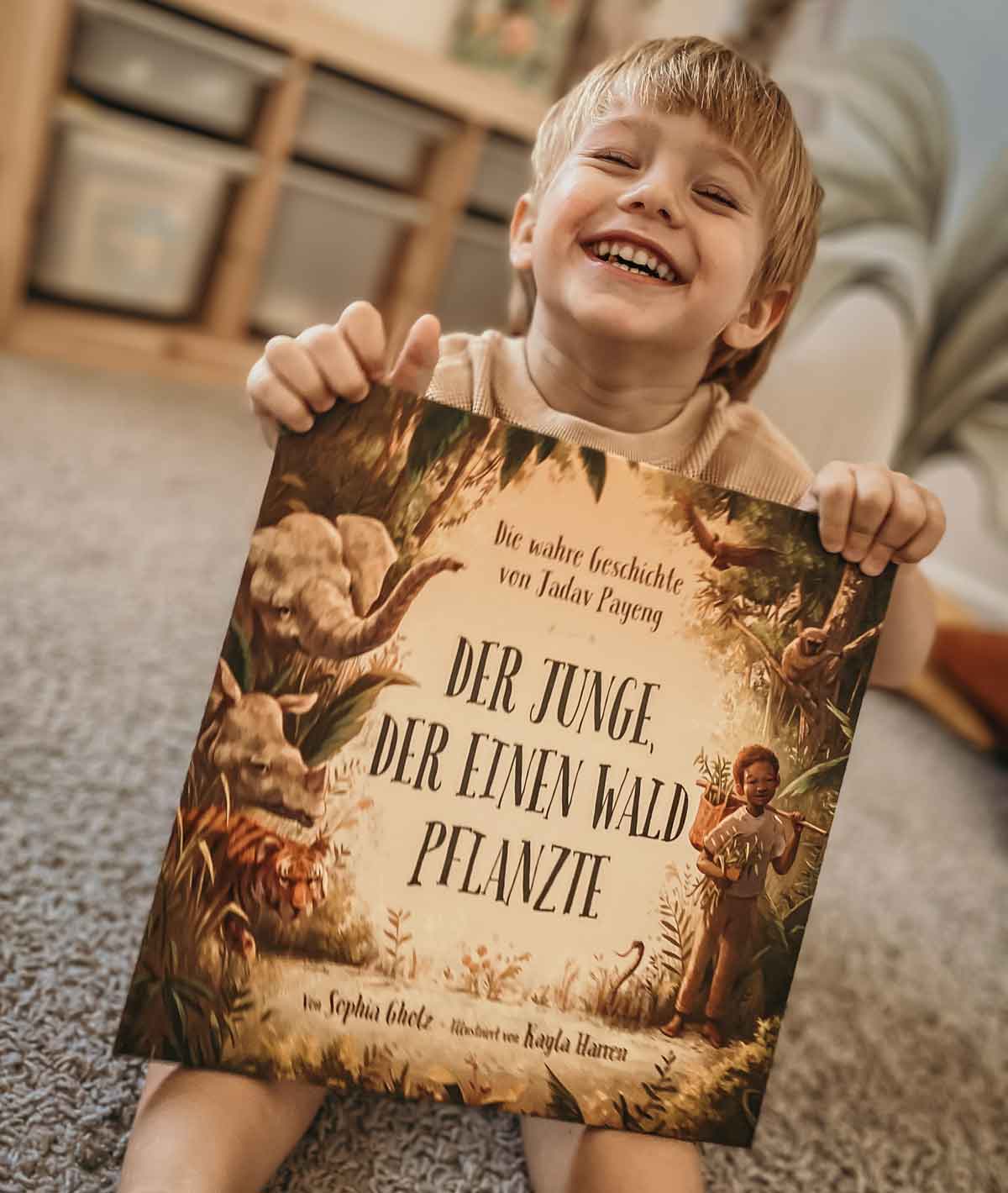 Dieses inspirierende Kinderbuch zeigt die wahre Geschichte von Jadav Payeng mit magischen Illustrationen von Kayla Harren und erzählt von der preisgekrönten Autorin Sophia Gholz.