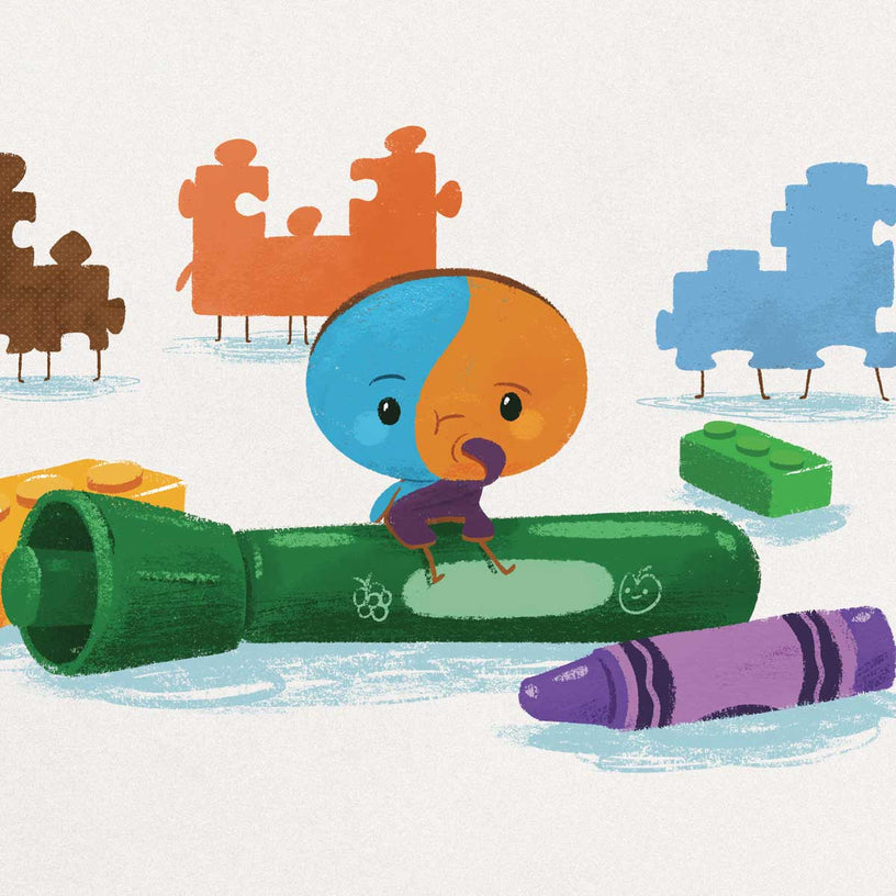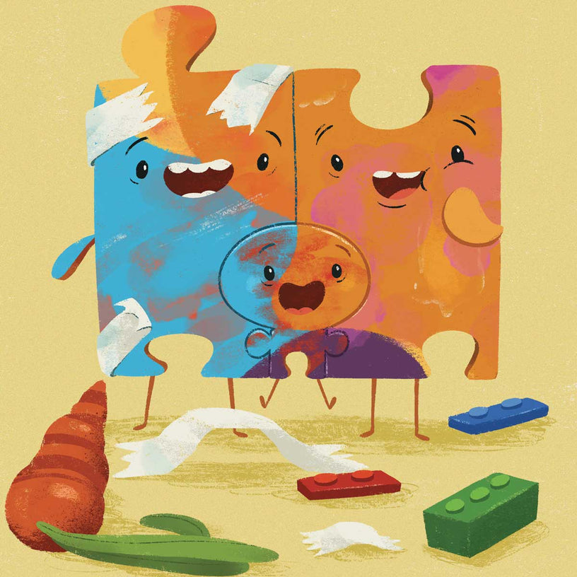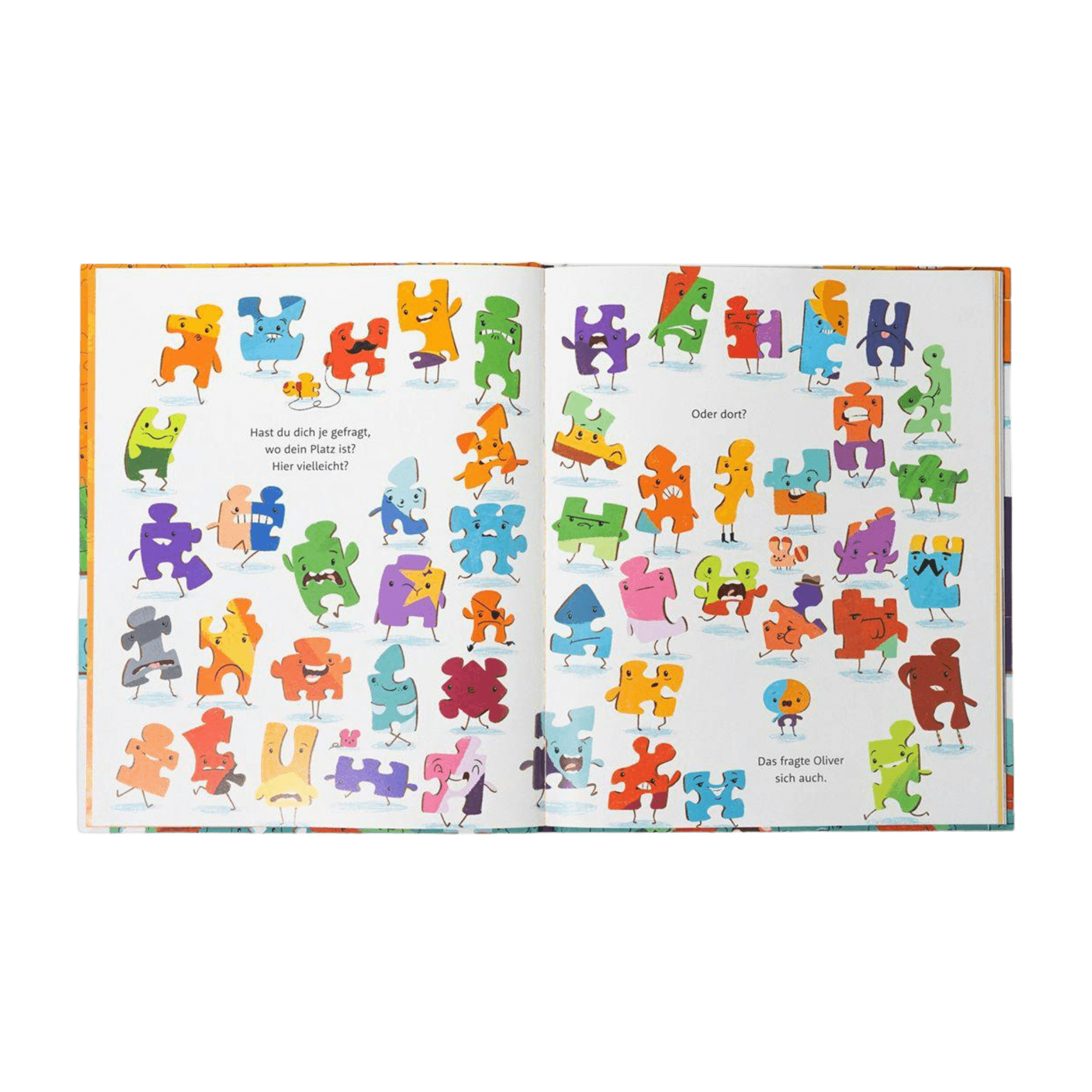 In „Einzigartig“ von Cale Atkinson träumt das kleine Puzzleteilchen Oliver vom ganz großen Abenteuer: Passt er in die riesigen Tentakeln eines Piratentintenfisches? Oder gehört er zum fantastischen Einhorn im funkelnden Weltall? Doch wo er auch hinkommt, fühlt er sich fehl am Platz. Zu klein, zu bunt, zu rund! Oliver verbiegt und verstellt sich, bis die anderen Teile ihn endlich aufnehmen. Doch was ist schön daran, dazuzugehören, wenn er nicht so sein darf, wie er ist?