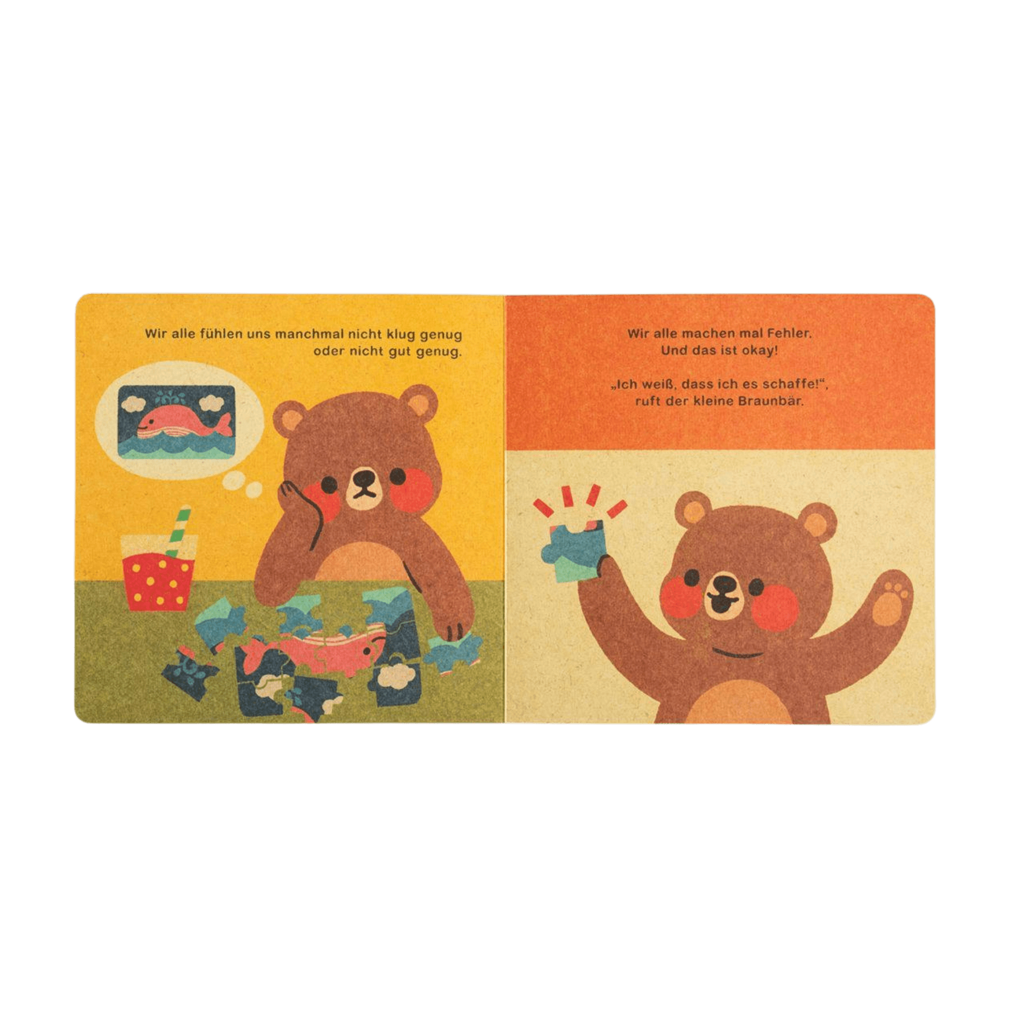 Über den Rand gemalt und nicht als Erster an der Ziellinie? Macht doch nichts! Dieses Pappbilderbuch im angesagten Retro-Stil ermuntert Kinder dazu, Neues auszuprobieren und sich von vermeintlichen Rückschlägen nicht entmutigen zu lassen. Die beliebte Illustratorin Annelies Draws erschafft eine zauberhafte Welt rund um den kleinen Braunbären und seine Freund*innen, mit der sich Kinder ab 12 Monaten gut identifizieren können. Kleine, universelle Weisheiten und Illustrationen im Vintage-Look vermitteln leicht verständliche Botschaften über kontinuierliches Lernen, Wachstum und das Vertrauen in die eigenen Fähigkeiten.