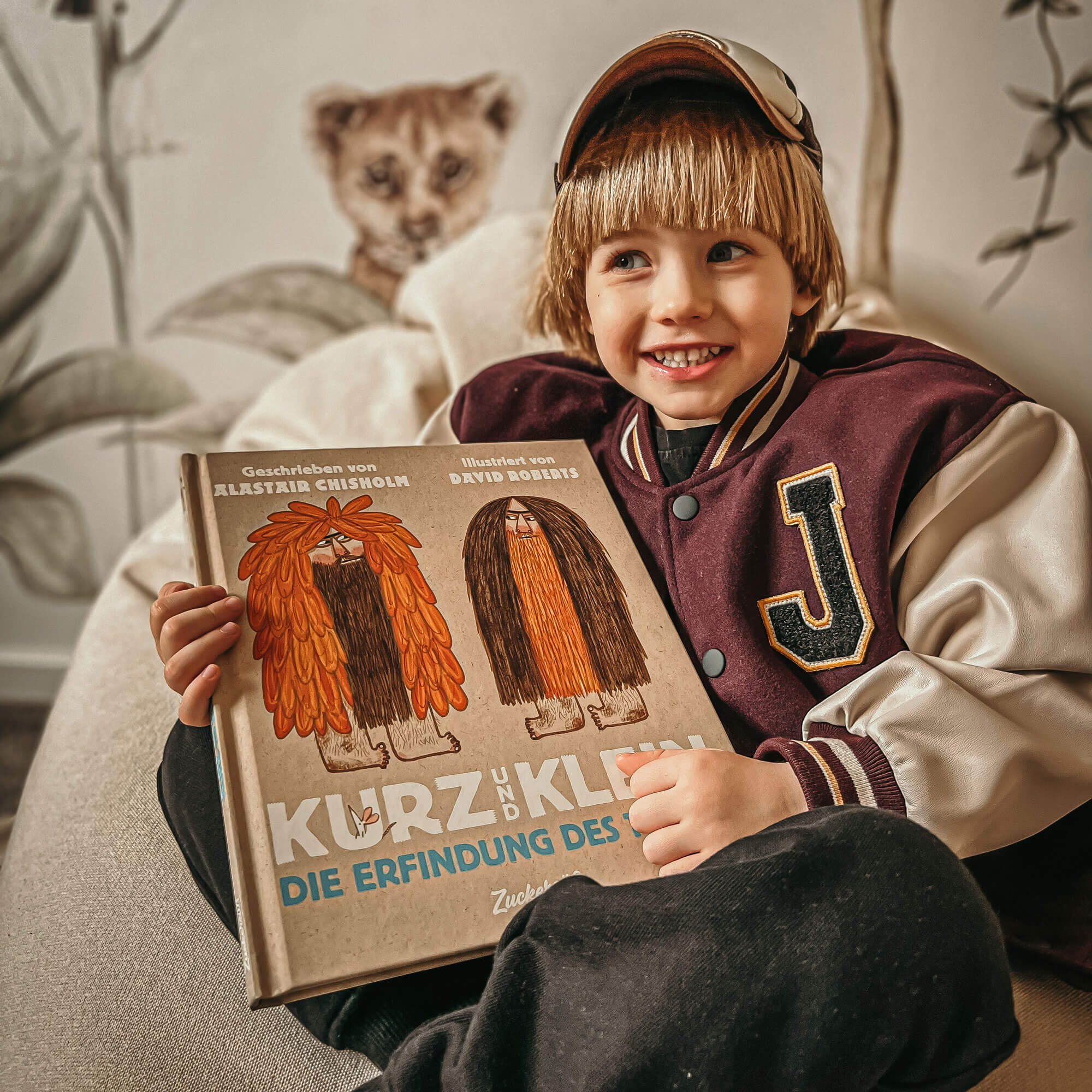 Kurz und Klein sind zwei einfallsreiche Höhlenmenschen: Jeden Tag übertrumpfen sie sich gegenseitig mit neuen, fantastischen Erfindungen. Nachdem Kurz das Feuer erfindet, entwickelt Klein den Stuhl. So liefern sich die beiden einen Technologie-Wettlauf, an dessen Ende beide auf riesigen Stapeln von Wolkenkratzern, Computern und Jumbojets sitzen. Bis die Stapel anfangen zu wackeln – und Kurz und Klein lernen, dass Zusammenarbeit und Teilen vielleicht doch der nachhaltigere Weg sein könnte ...